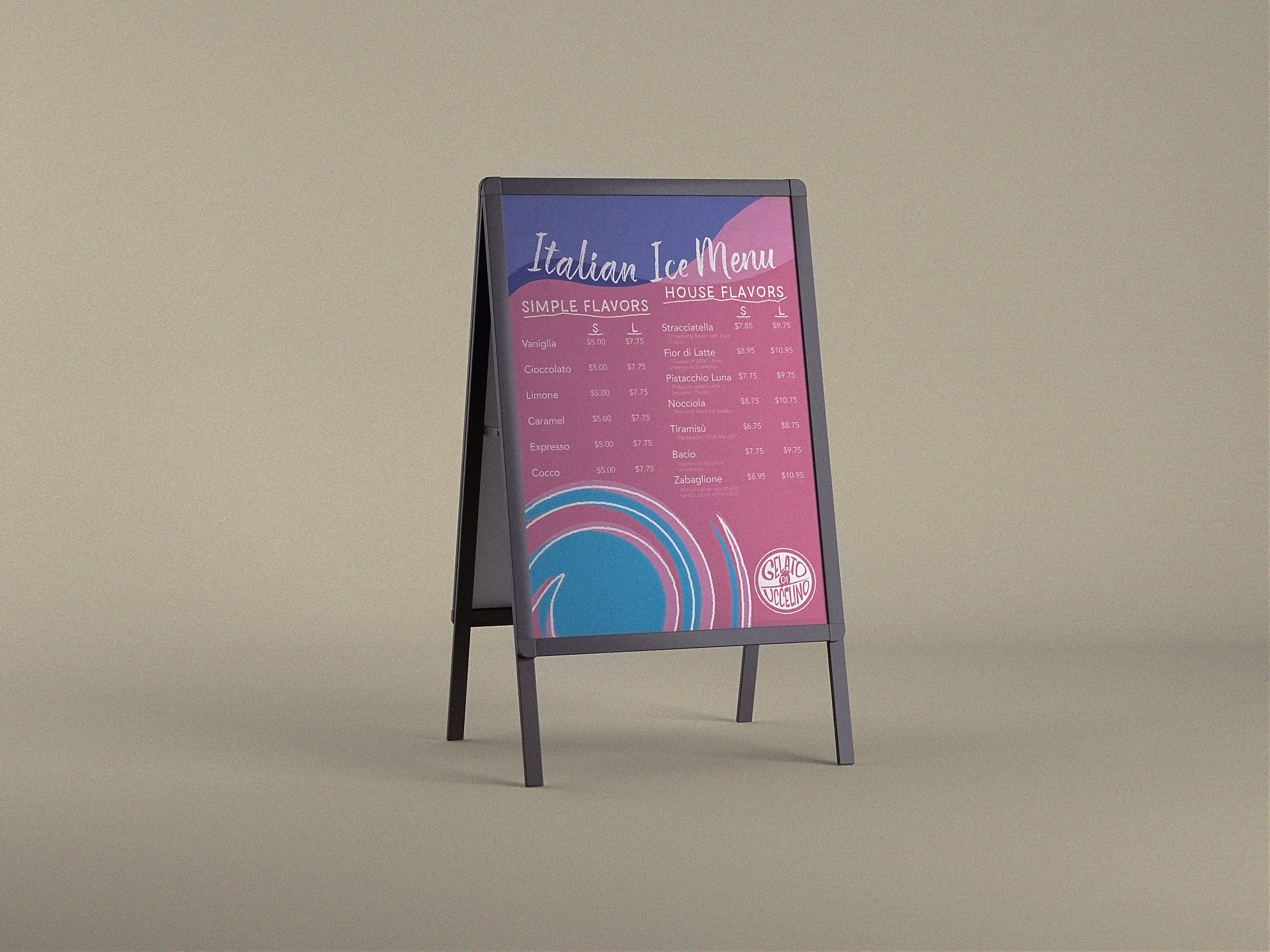 A brand design for a fictional ice cream company as a challenge to create cohesive branding aesthetics.