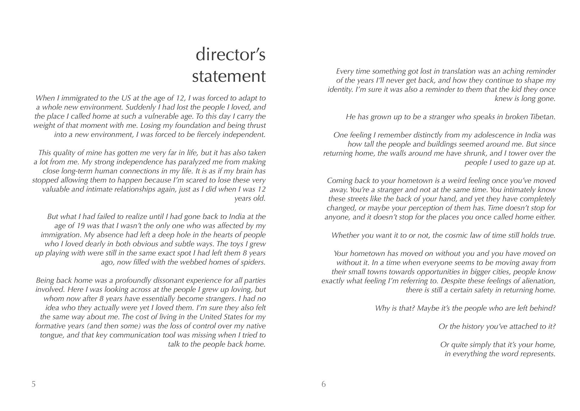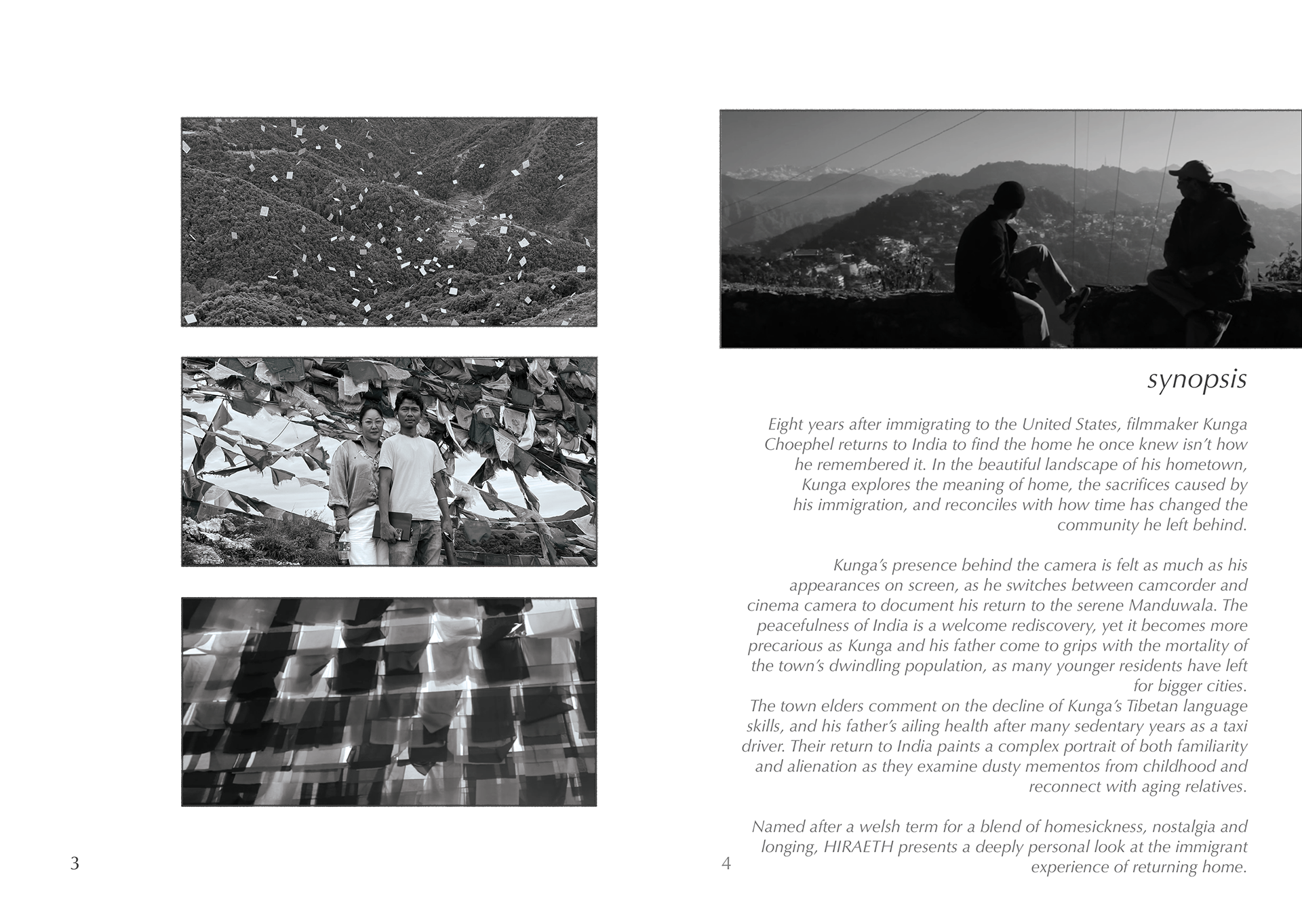 A documentary Directed by Kunga Choephel, who commissioned a press kit for his upcoming release of "Hiraeth". This was designed to both be distributed through online channels as well as printed.